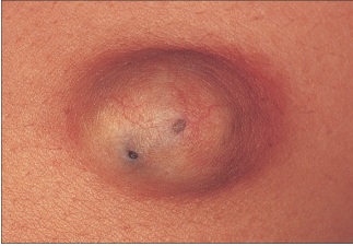 Sebaceous cysts: Sebaceous cysts develop under the skin and contain an oily substance. Hair follicles are a prime spot for these inflammations. As with many types of cysts, people who have sebaceous cysts should refrain from scratching or picking at the affected areas, because infection might occur.