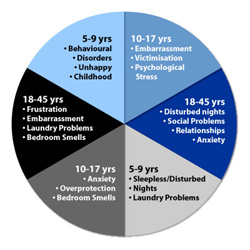 Bedwetting is an issue that millions of families face every night. It is extremely common among young kids but can last into the teen years. Bedwetting usually becomes a problem between the ages of five and ten. It’s more than twice as prevalent in boys as it is in girls and more likely if parents suffered from bedwetting when young. 44% of parents of children who wet the bed reported that their child had (Lack of energy, reduced attention span, low-self esteem, depression).